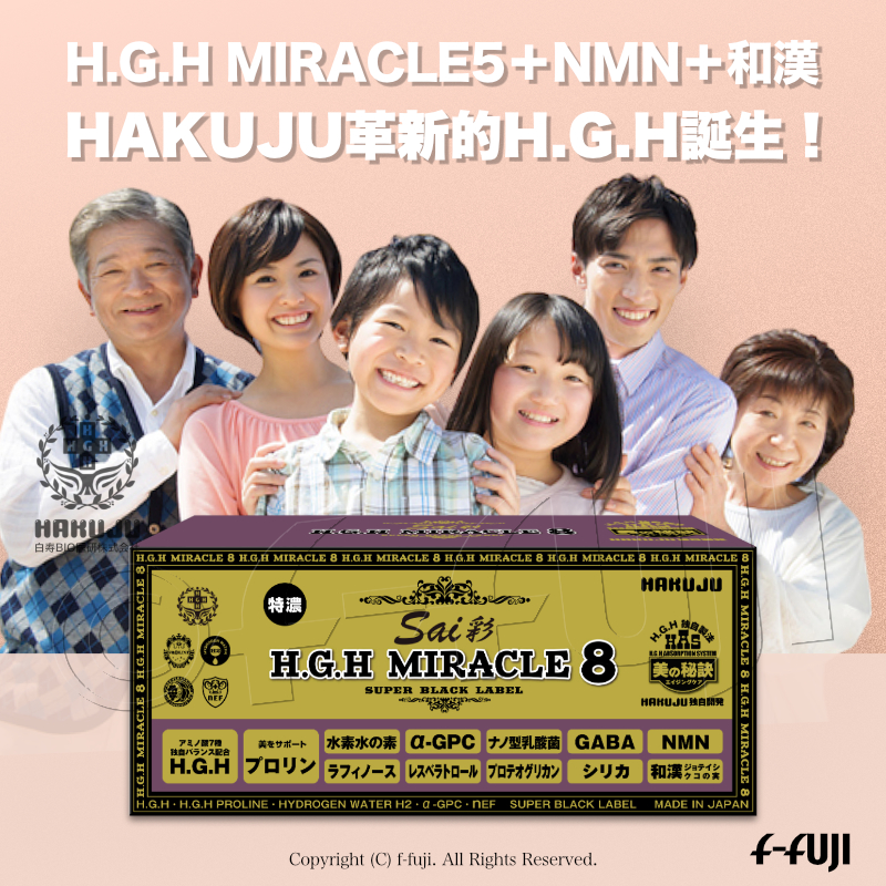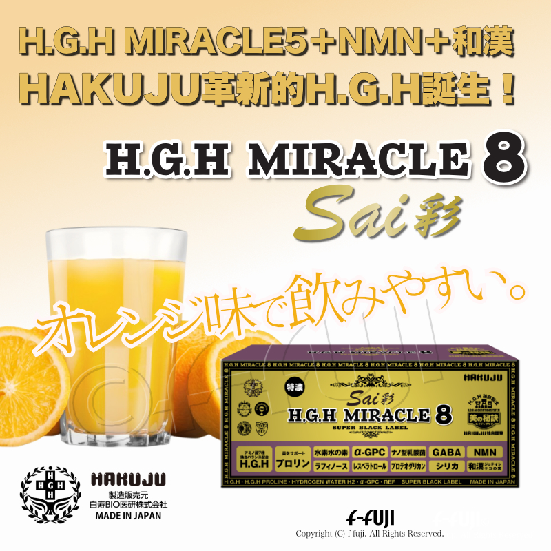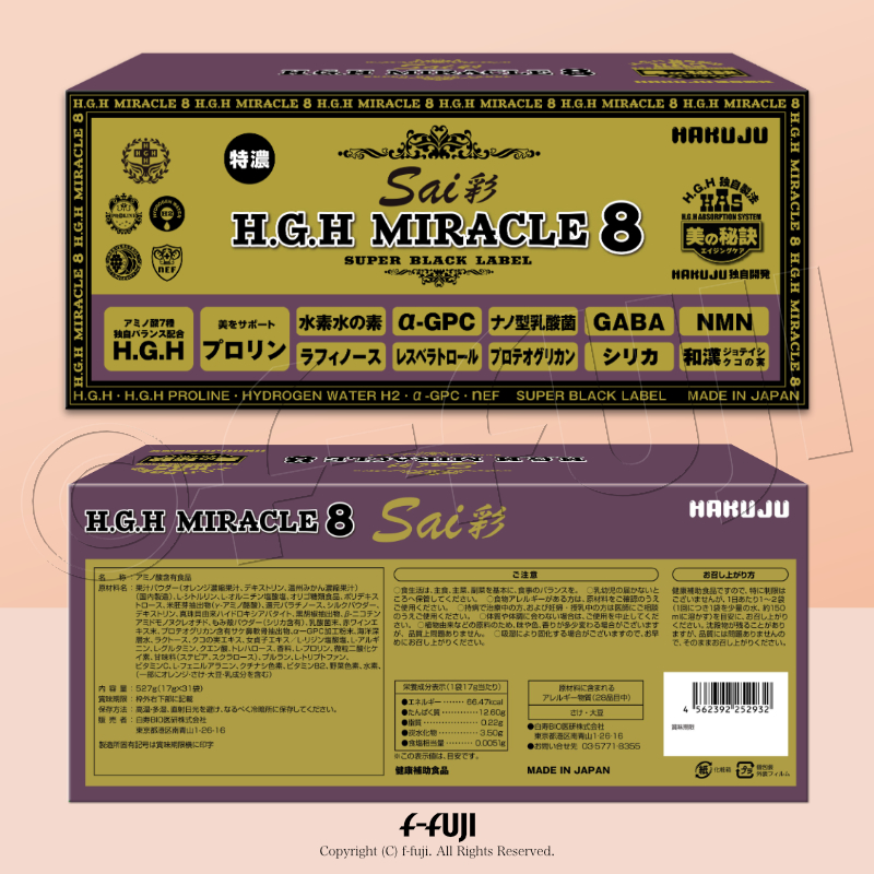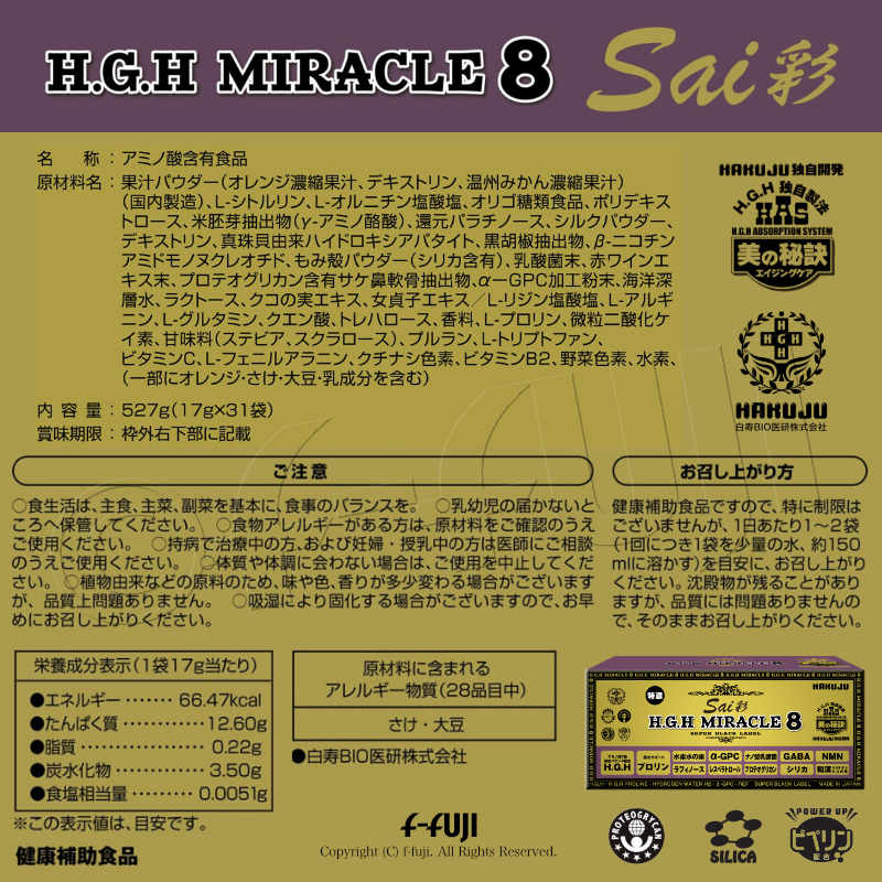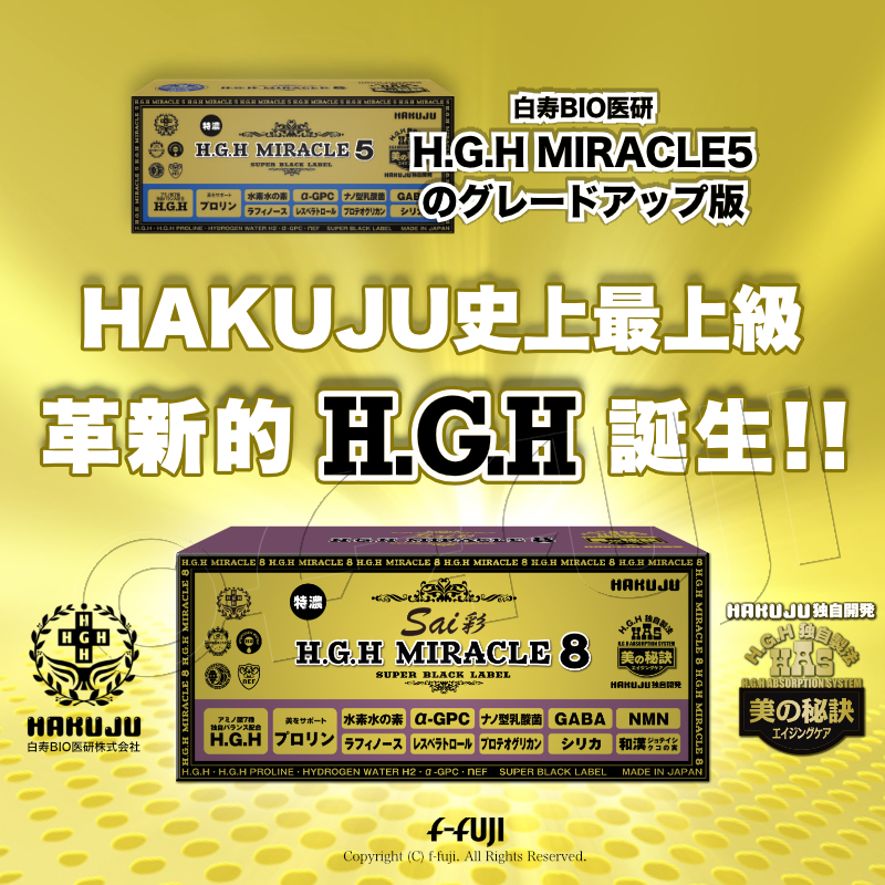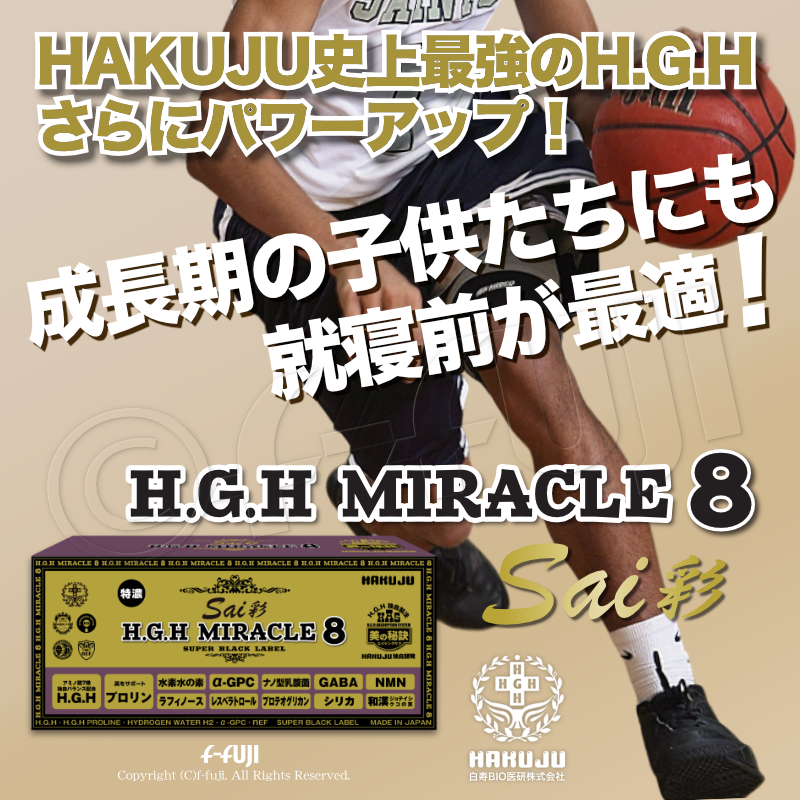 最新発売 H.G.H MIRACLE5のグレードアップ版 HGHの最高峰 H.G.H MIRACLE8 Sai彩 ミラクル8 さい 1箱17gX31袋入り MIRACLE5+NMN+和漢 プロテオグリカン配合 白寿BIO医研 HAKUJU 高濃度アミノ酸バランス配合 サプリメント ※送料無料・代引手数料無料
