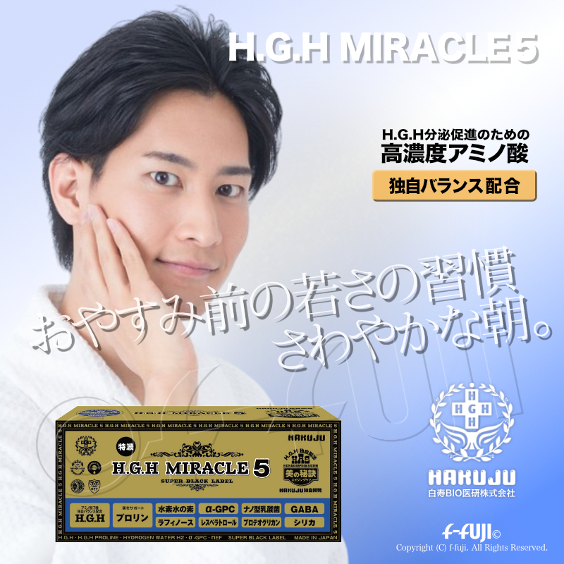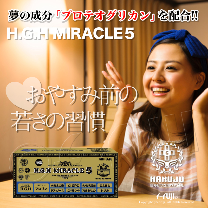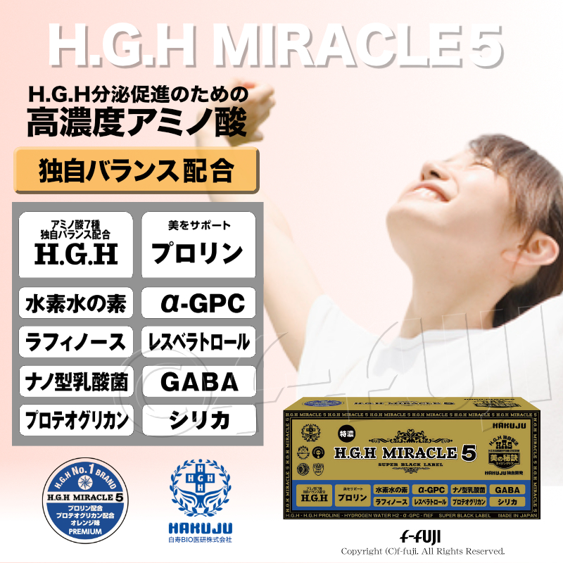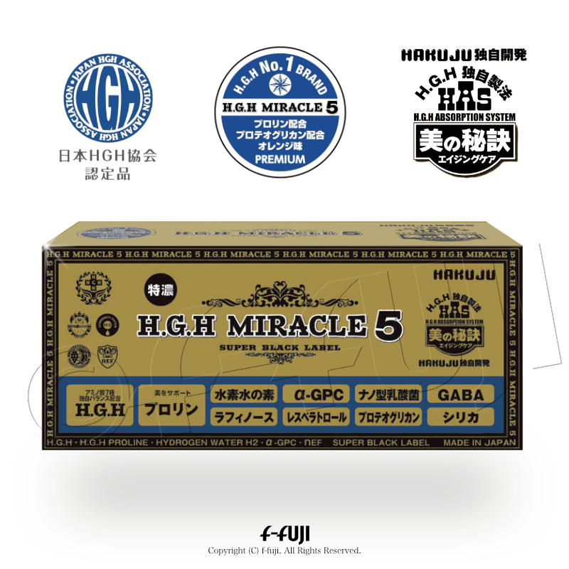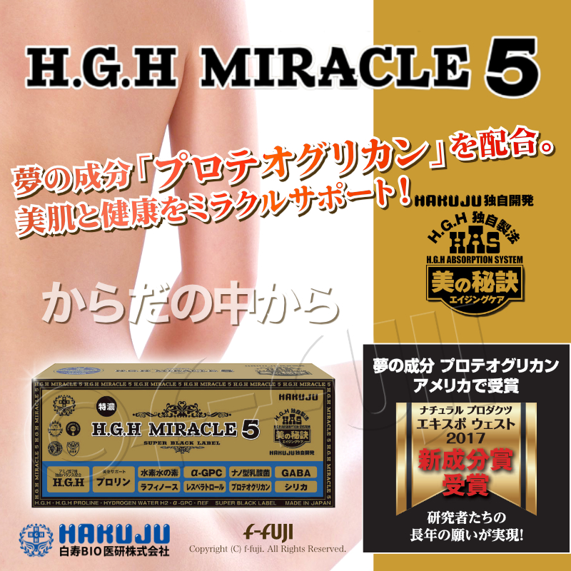 H.G.H MIRACLE5 1箱17gX31袋入り ミラクル5 プロテオグリカン配合 白寿HGHの最高峰 SUPER BLACK LABEL 白寿BIO医研 HGH協会認定品 アミノ酸バランス配合 サプリメント ●安心安全代金引換宅配送料無料